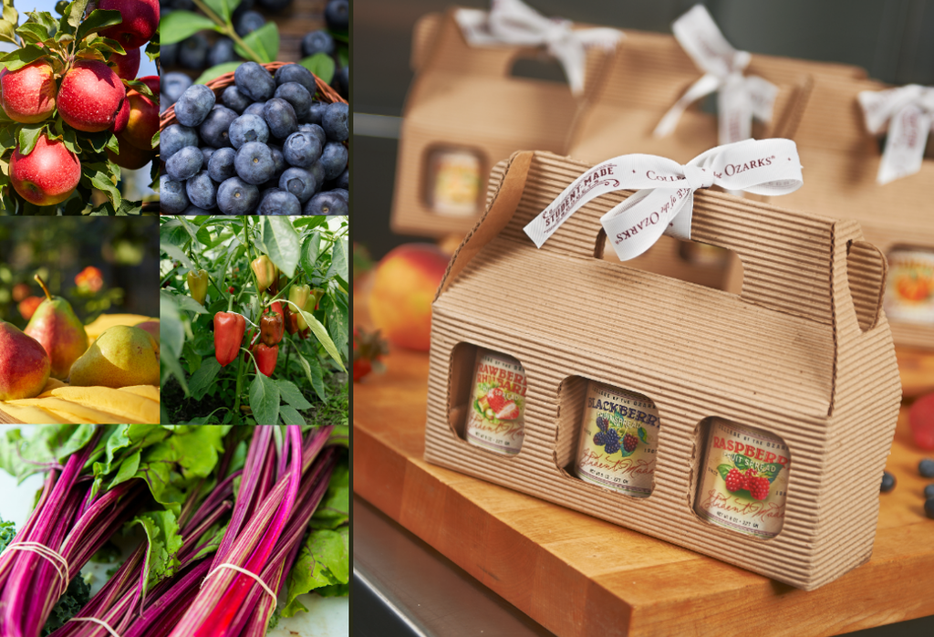 Try our mouth-watering recipes such as Blackberry Balsamic Vinaigrette, Apple Butter Muffins, Salmon with Peach Jalapeno Glaze, or even Cornmeal Dog Biscuits for man's best friend. All recipes make use of our fresh student-made products.