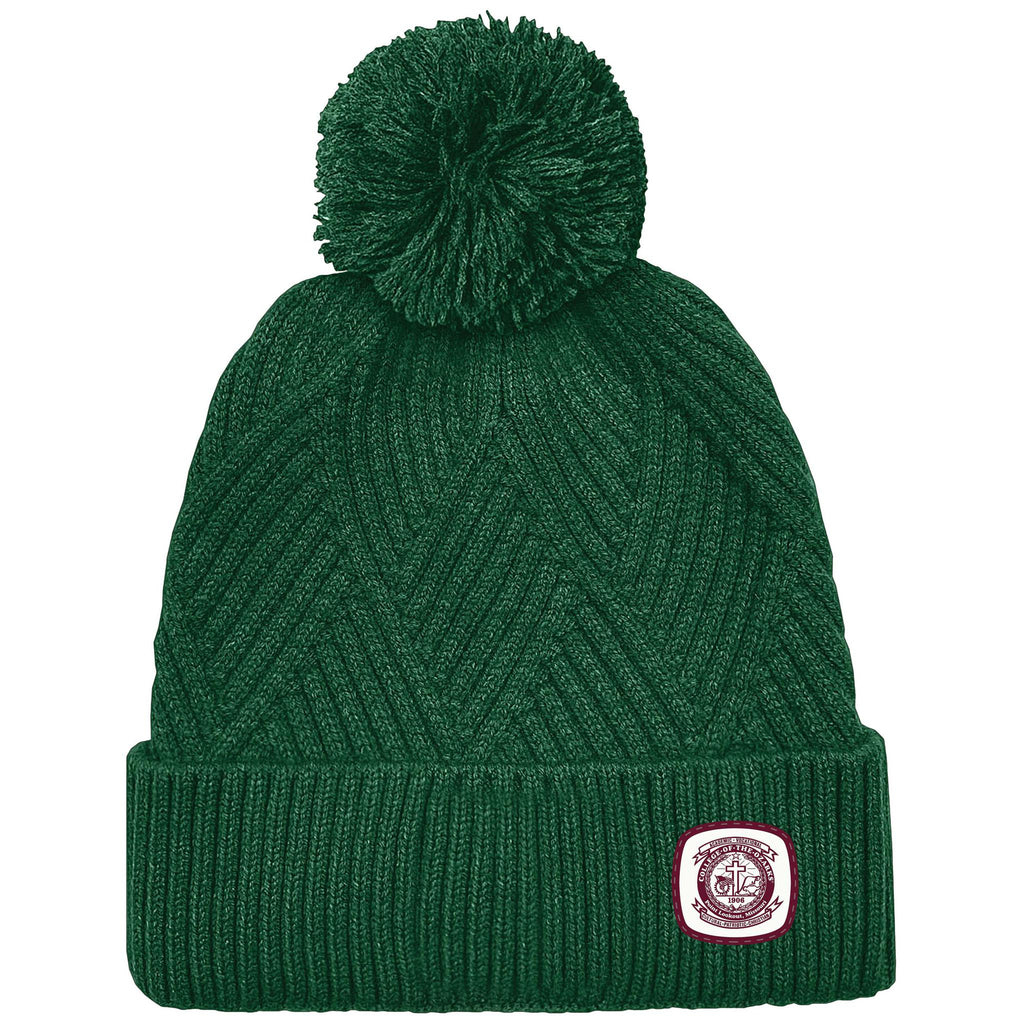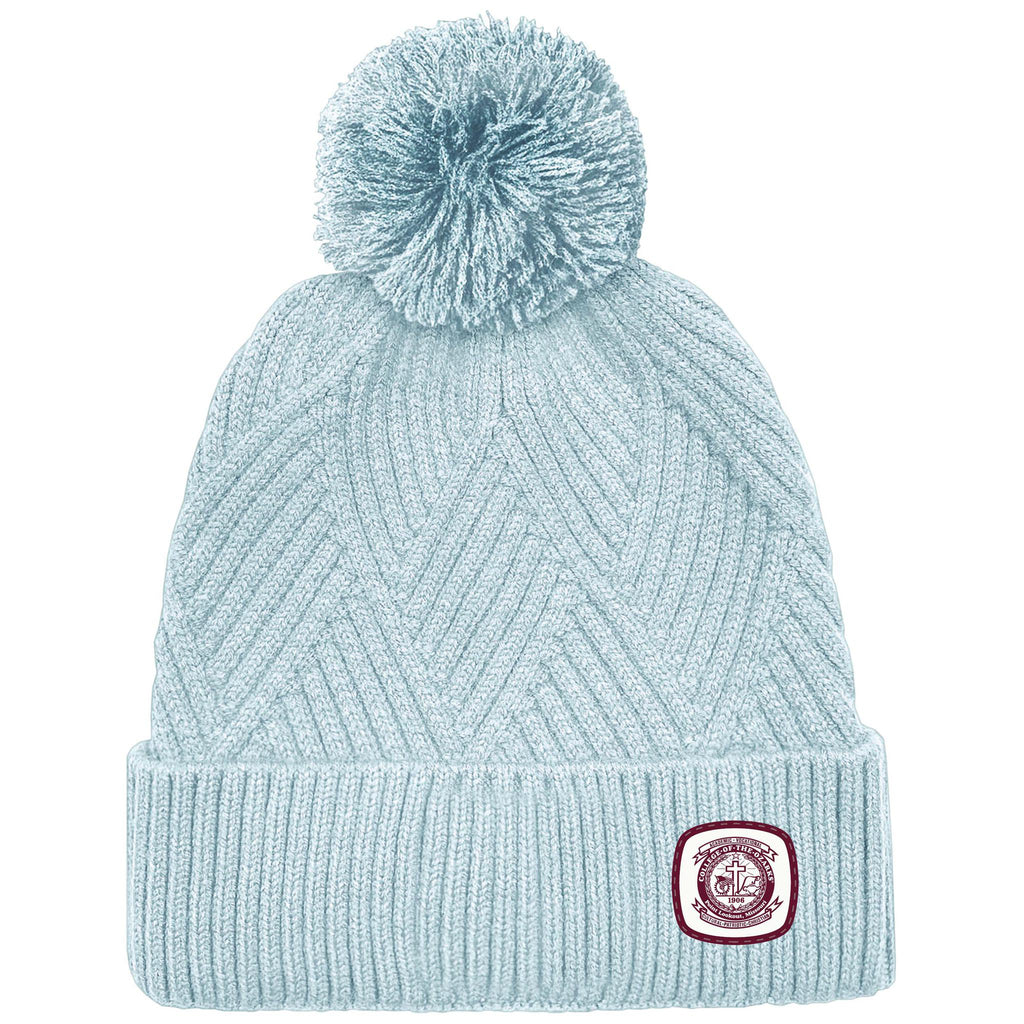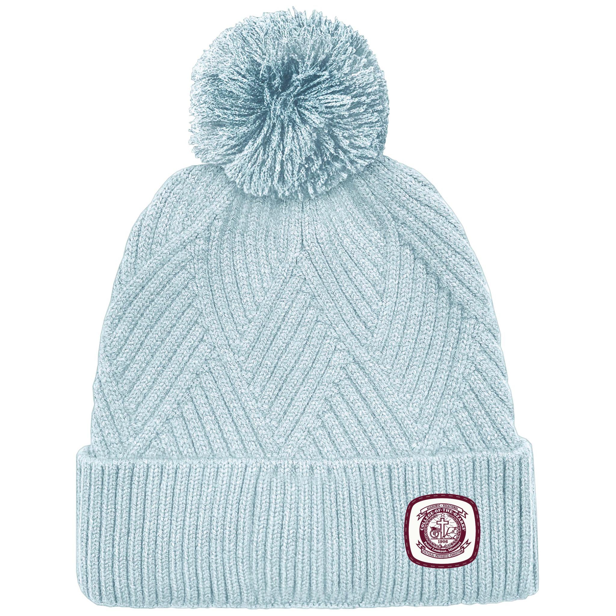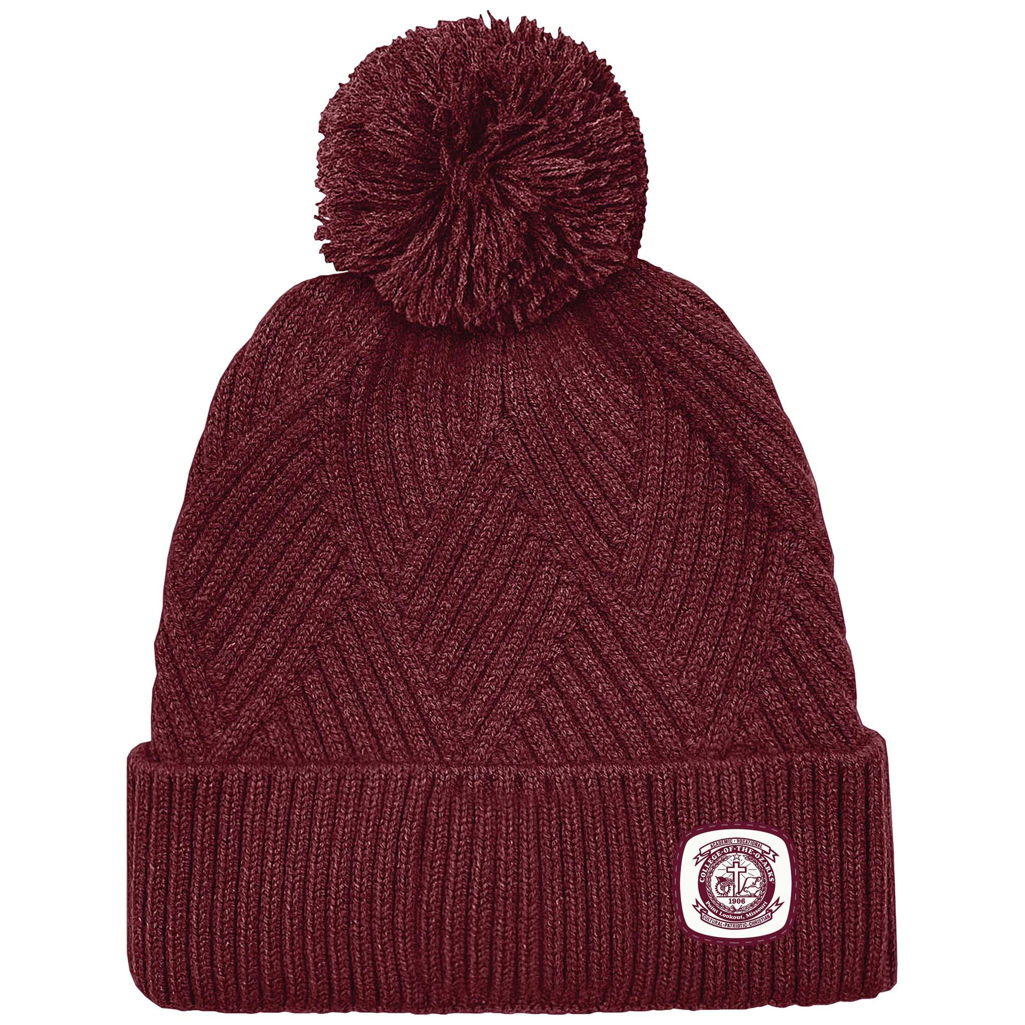 Our college logo Bridger Cuff Beanie has a unique diamond textured pattern and pom to provide a sense of fashion and style in a crowd of basic beanies.