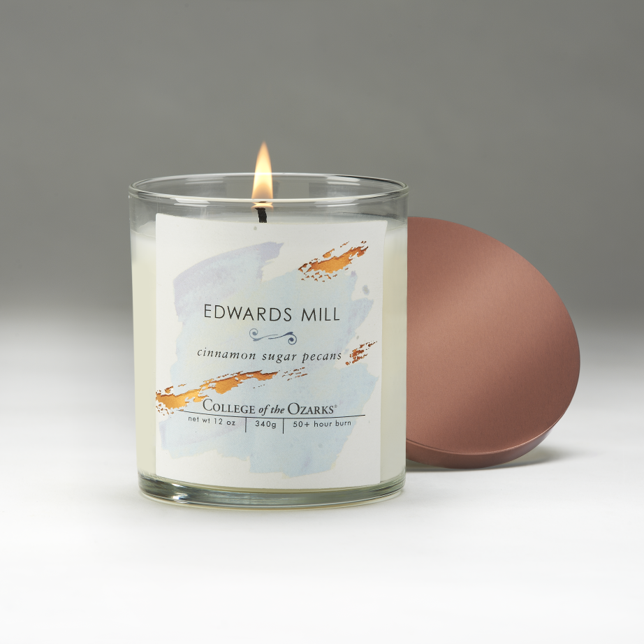 Hand-poured candles make a great gift or a warm addition to any home. Each candle is named after a College of the Ozarks icon. Soy and Paraffin blend/100% renewable fiber wick, no zinc core. Amazing room-filling clean scent fragrance-consistent quality from beginning to end. 45-60hr. burn time. USA made jars, lids, and labels.