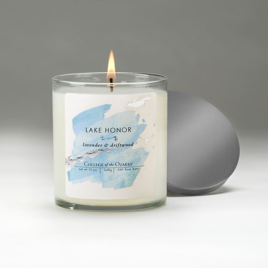 Hand-poured candles make a great gift or a warm addition to any home. Each candle is named after a College of the Ozarks icon. Soy and Paraffin blend/100% renewable fiber wick, no zinc core. Amazing room-filling clean scent fragrance-consistent quality from beginning to end. 45-60hr. burn time. USA made jars, lids, and labels.