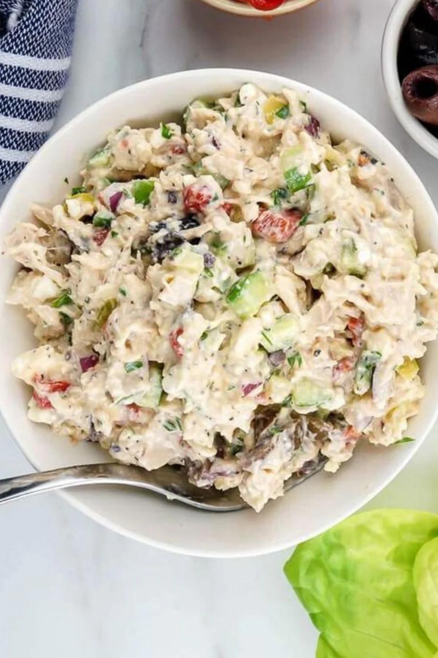 1 1/2 cup of Miracle Whip + 2 cans chicken breast + this package.