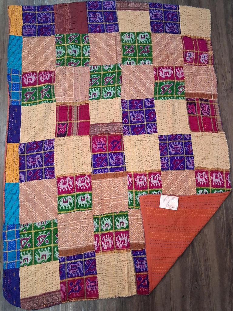 Silk and Cotton Kantha Patchwork Quilt 10/10