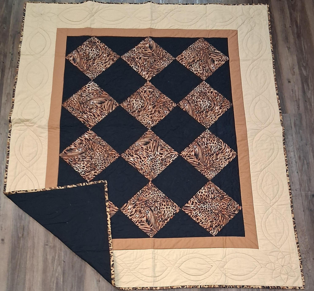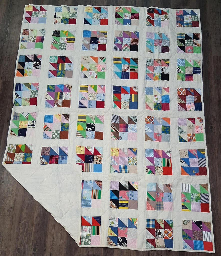 1970's Gold and Brown Cross stitch Sunflower and wreath quilt 10/13