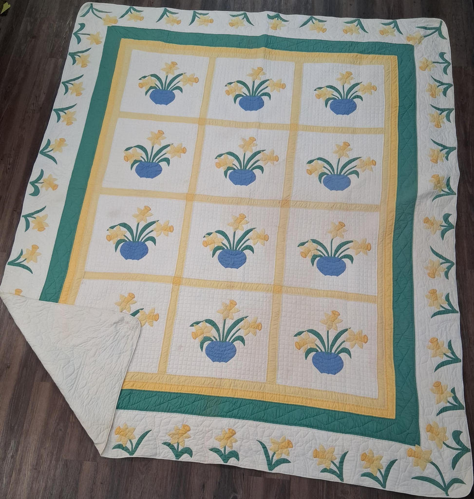 Yellow, Blue, and Green Daffodil Applique Quilt 10/13