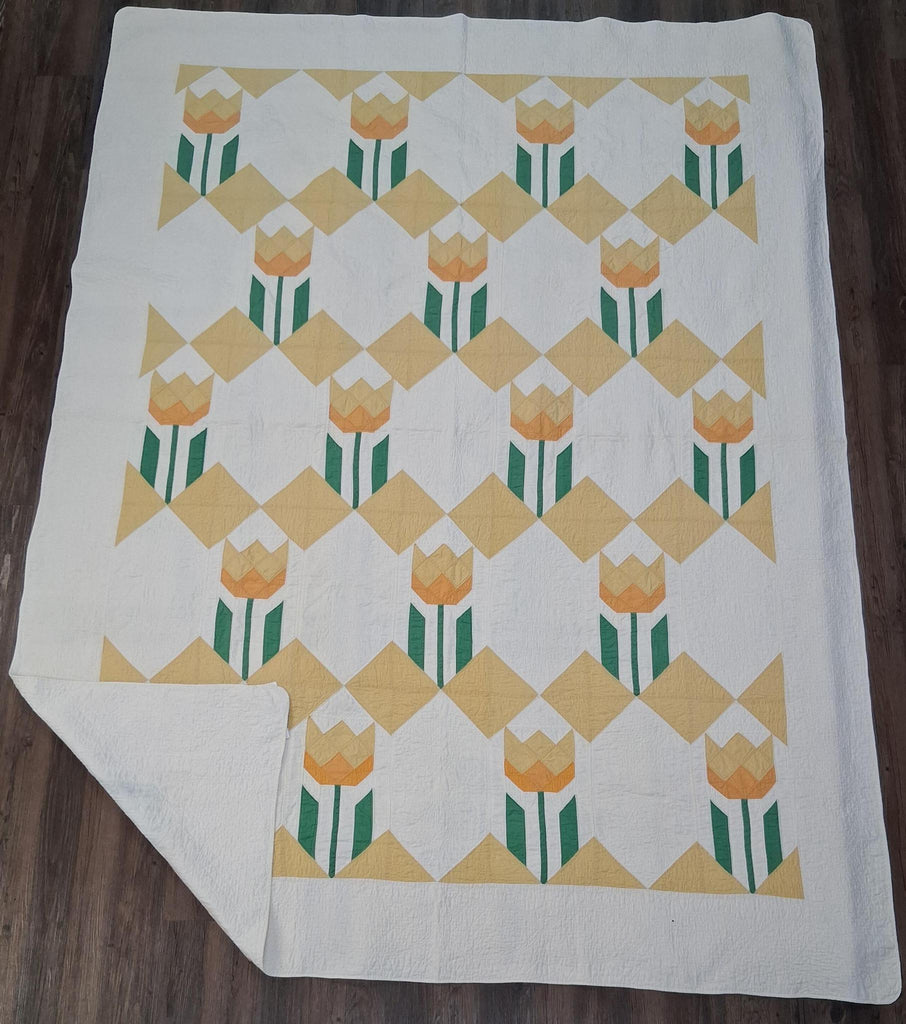 1938 Tulip Bowl Appliqued Quilt Top 10/13