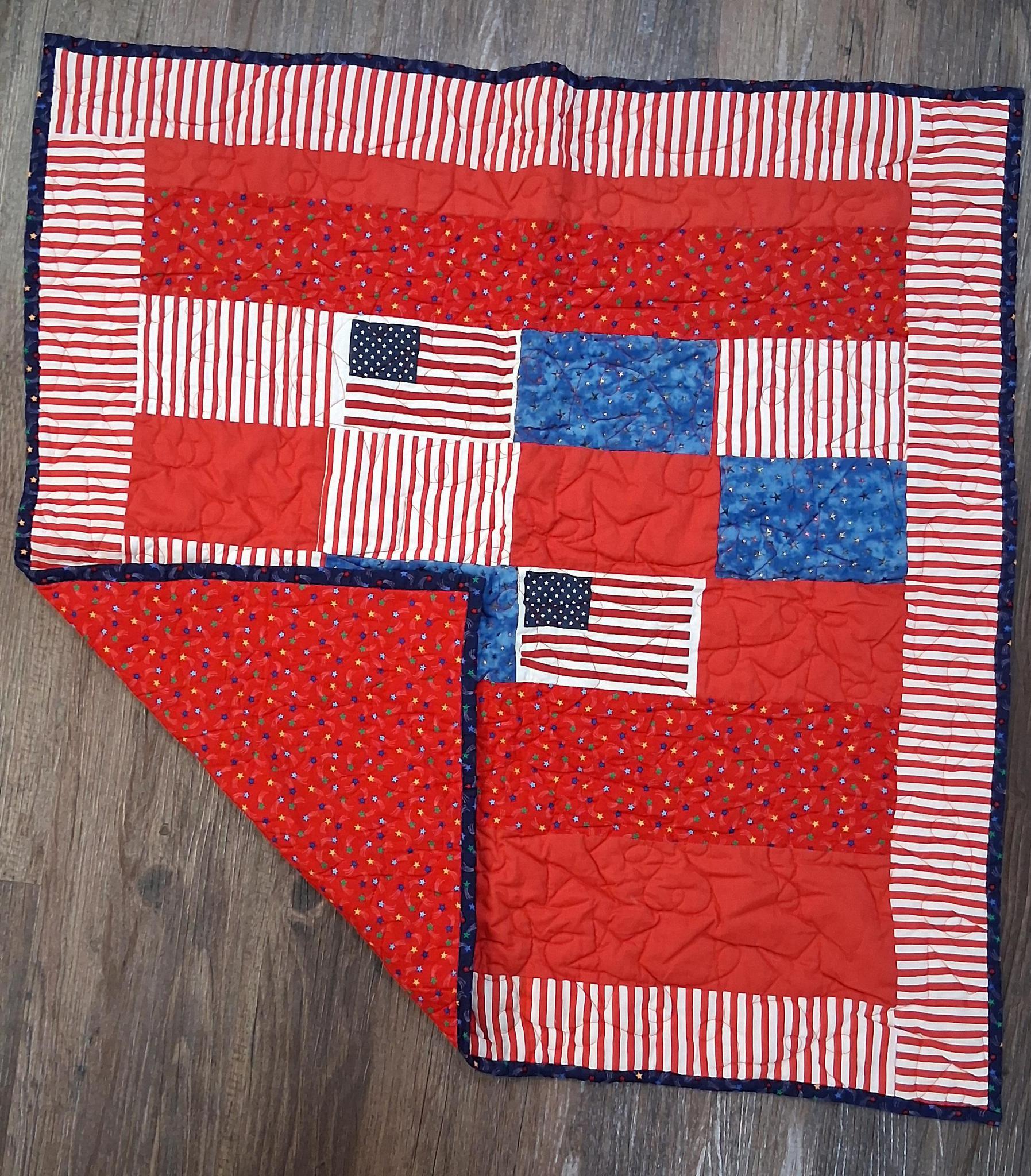 Red & Blue Flag Art Quilt. Great Star Back and machine quilted. Excellent Condition. 33" X 33".